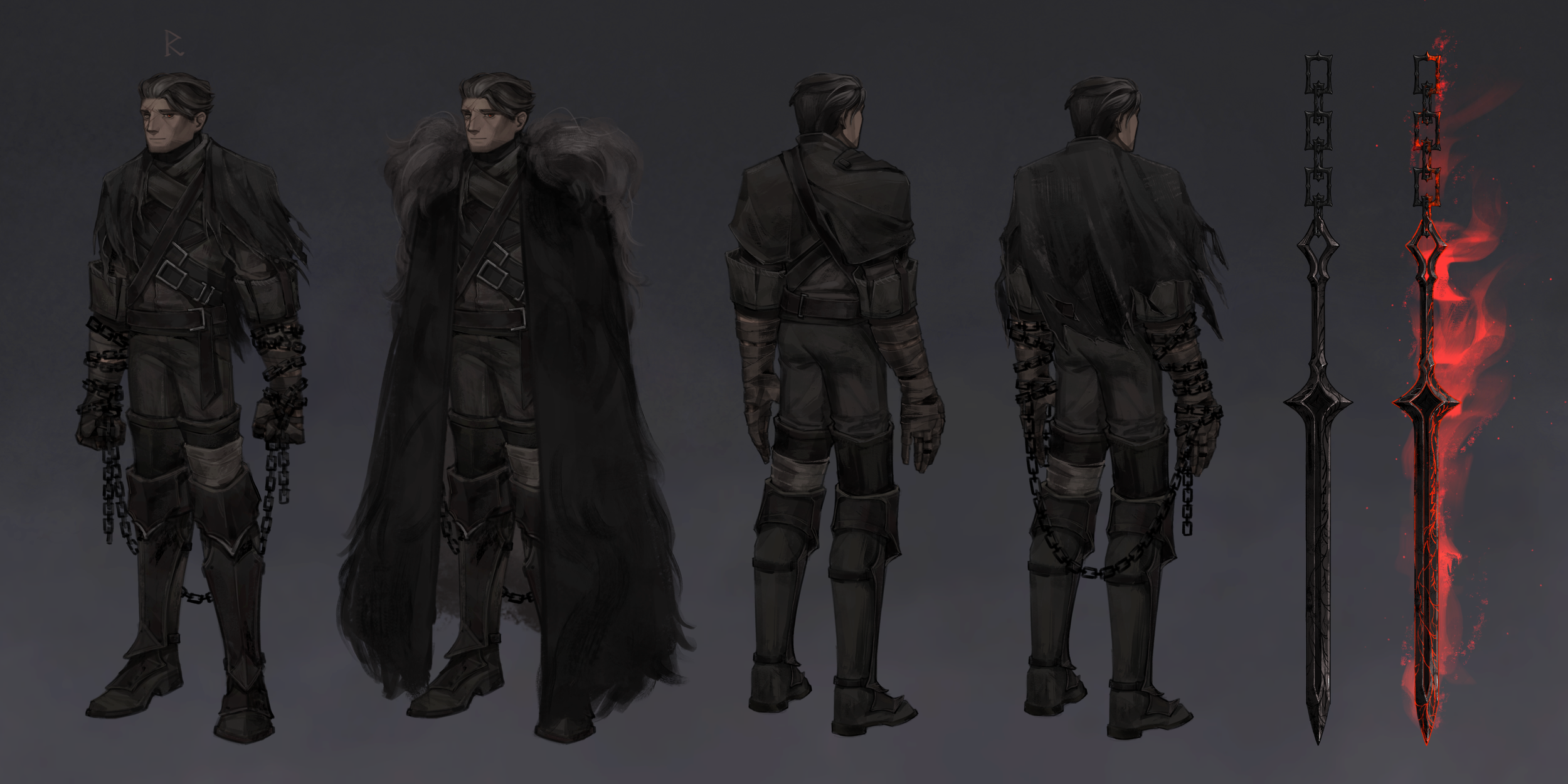 ✧ Simple, rough-patched wear was chosen to evoke a wandering experienced sellsword