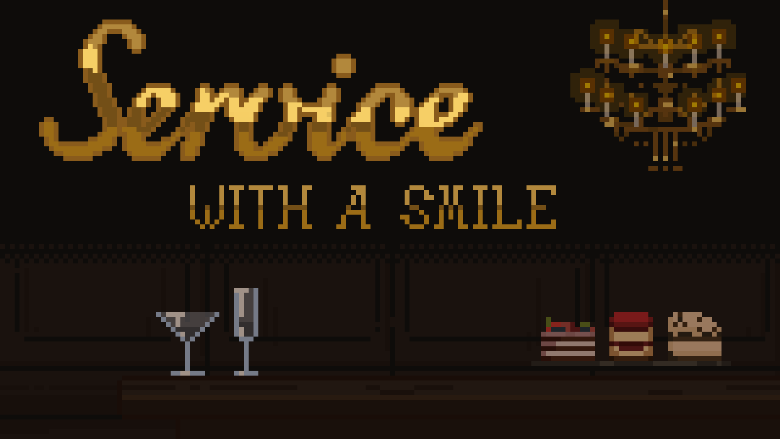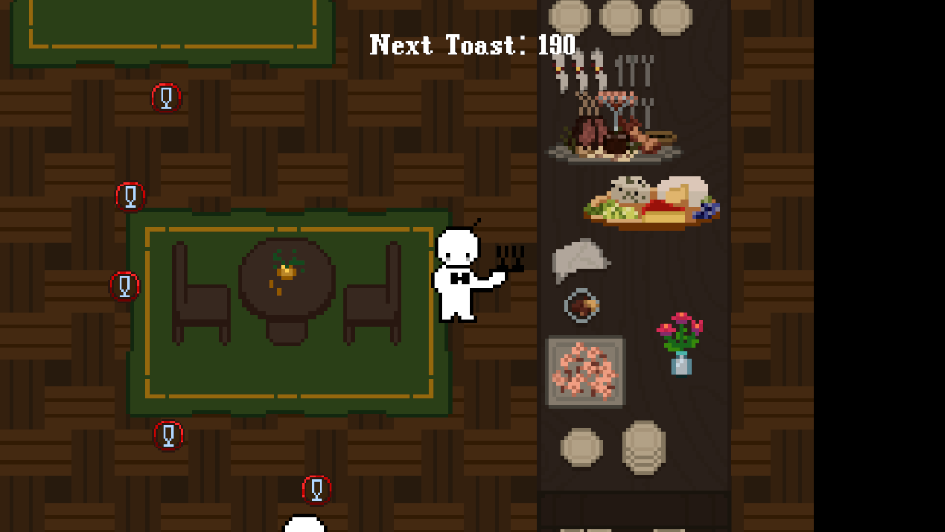 Service With a Smile is a minigame-filled simulator in which the player, an overworked catering waiter, must serve rich guests at an extravagant party. It was developed for GDC’s Global Game Jam 2026 in Unity, utilizing Visual Studio Code (C#), Procreate, Adobe Photoshop, Google Suite, and Atlassian softwares. I served as the project’s director and producer.